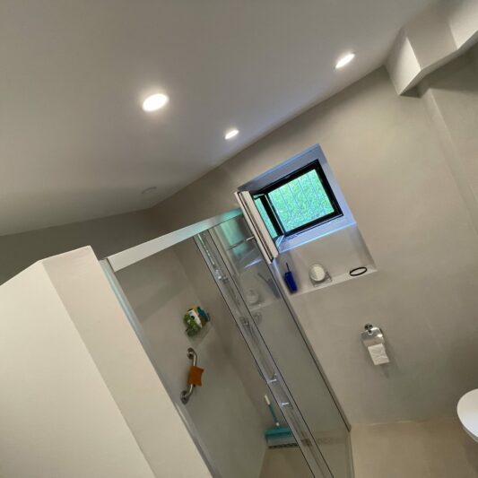 Kalk-Marmorputz für fugenlose Oberflächen im Bad.